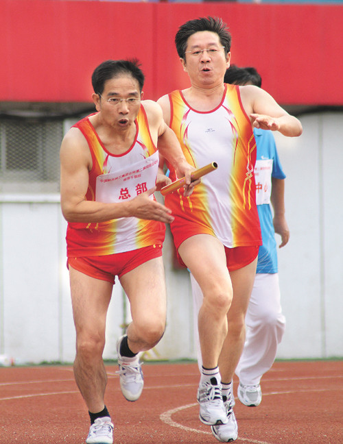 CASIC Vice President Cao Jiaoguo and Assistant to President Xie Lianggui participated in Men's 4×100 relay race.